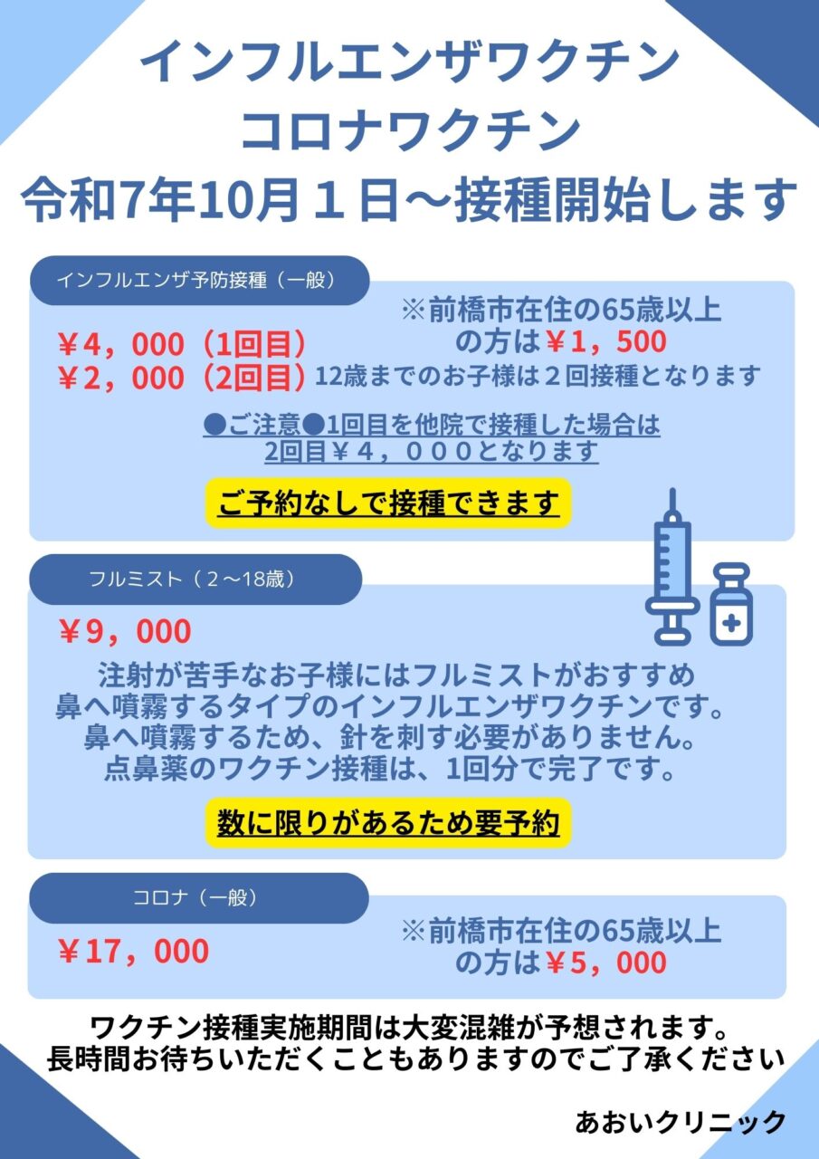 10/1よりインフルエンザ・コロナの予防接種の受付を開始いたします。